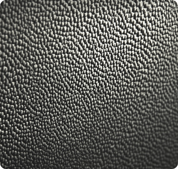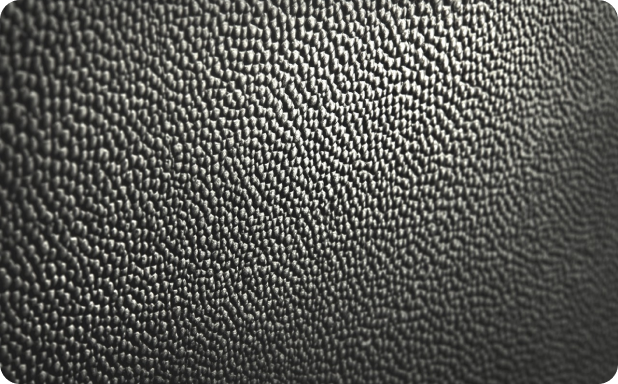 This rich black leather panel is tipped with pewter ink and embossed with a stingray pattern for a two-toned effect that plays with the light and adds a powerful dynamic to modern decor.