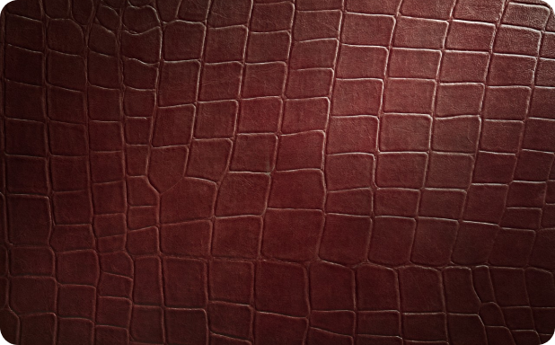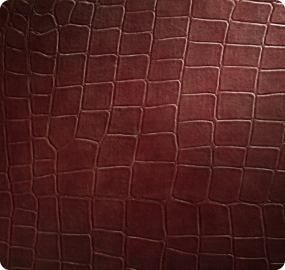 This Italian leather panel, textured to emulate crocodile skin, has a hand-rubbed burgundy color and is finished with a secondary tone that adds depth. A bold, provocative option that stands out in any kitchen design.