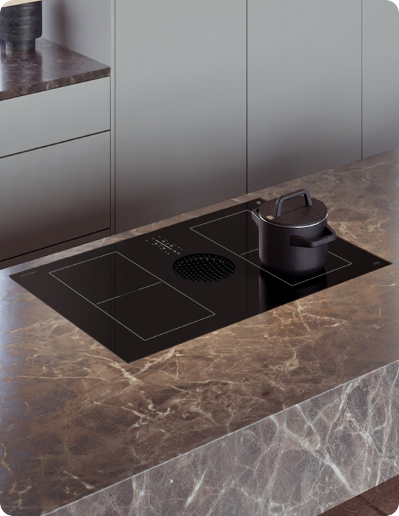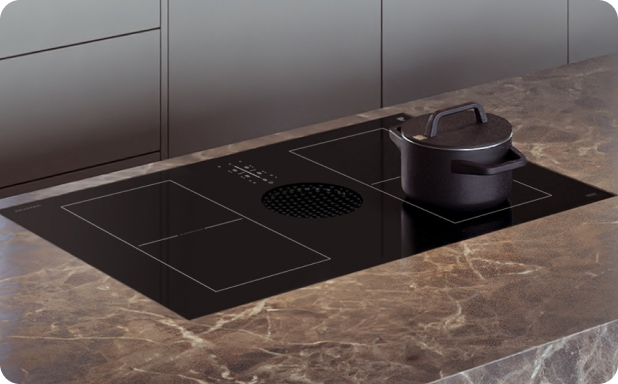 This cooktop’s slim profile allows for infinite design potential and operates quieter than a hood, all while clearing the air of vapors and odors 4x faster than steam can rise. Plus, it features Luxury Exclusive Flex-Choice™ XL Zones – North American exclusive XL elements with Automatic Bridging and Assisted Cooking options for exceptional results every time.