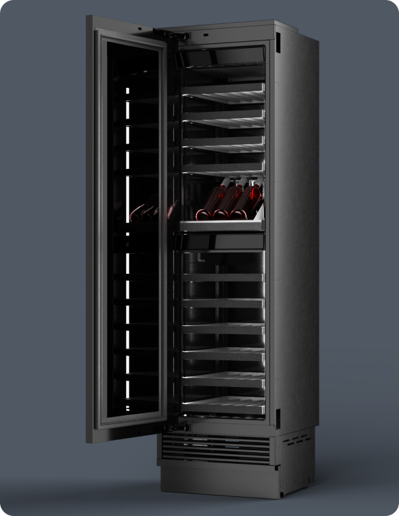 These new Wine Columns from JennAir® are meticulously engineered to protect wine through: consistent temperatures, ideal humidity control, reduced vibration technology, and UV protection through Ambra Lighting. These models will be available in 18” and 24”, left swing or right swing, RISE™ and NOIR™ Design Expressions.