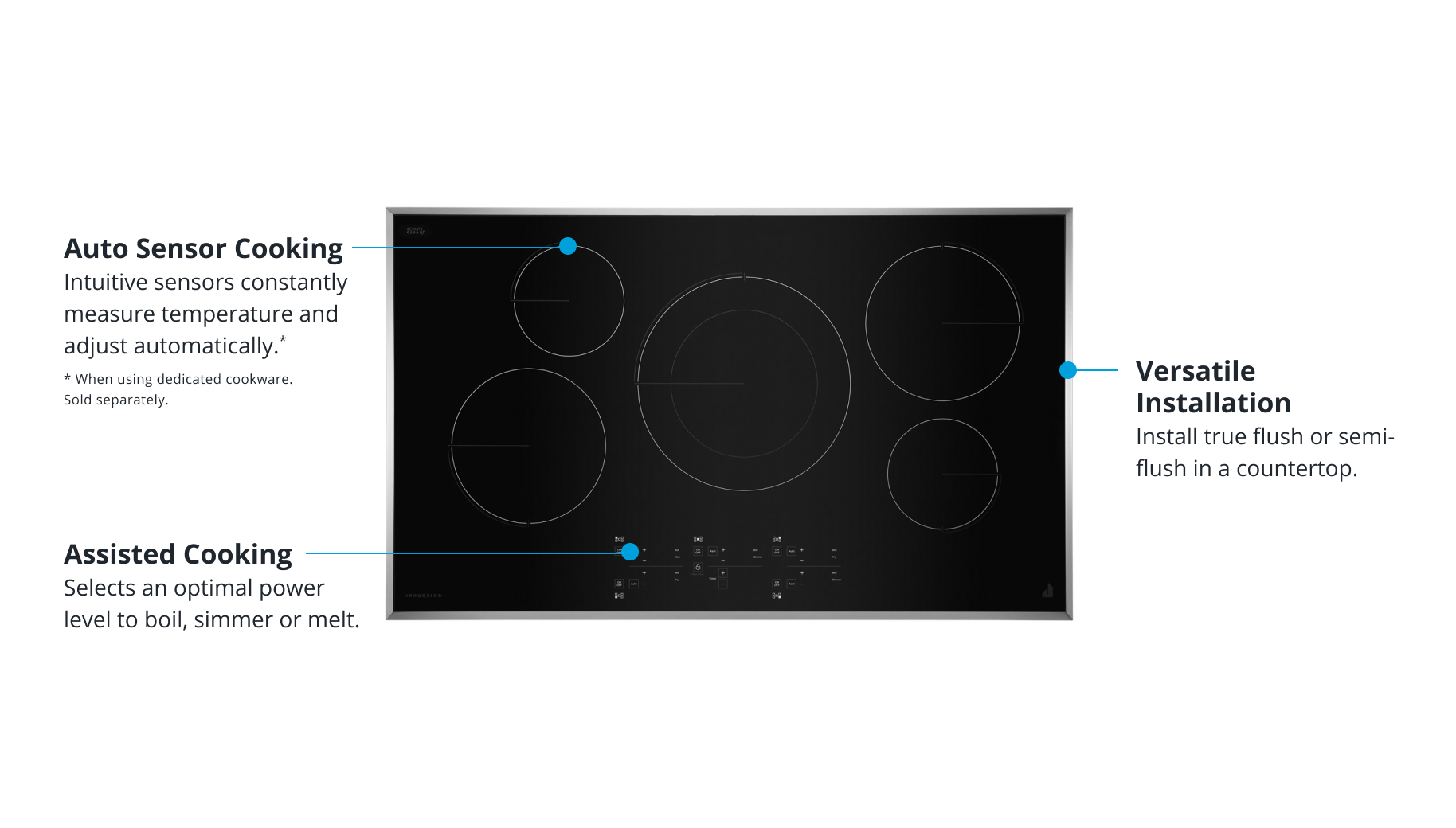 Defy the mundane with our new Lustre 36" Induction Cooktop. Combining the minimalist appeal of sleek glass with the precision of gas, this cooktop invites owners to discover new culinary techniques on a surface that converts cookware into the heat source.