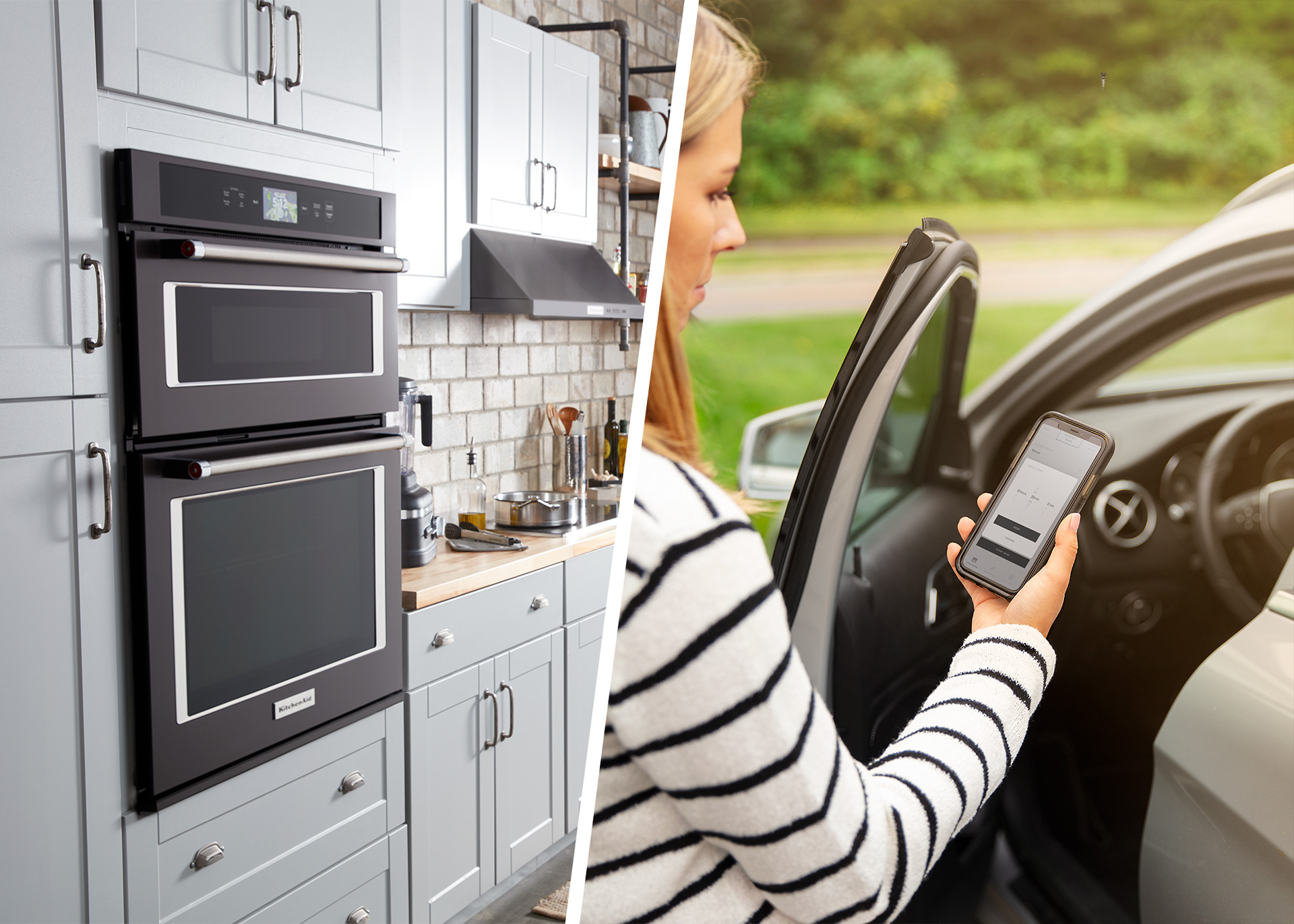 - Connected appliances can make meal prep even simpler. With the KitchenAid® Smart Oven+ Combination Oven with Powered Attachments, for instance, young adults who grew up using smartphones can use their devices to remotely monitor and control the oven. Older generations may benefit from the 4.5″ full color glass-touch LCD display that allows them to clearly see and select their oven’s capabilities, while the SatinGlide™ Roll-Out Extension Rack makes it easier to cook with large or heavy bakeware.