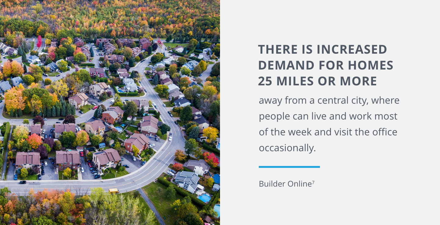 For example, there is increased demand for homes6 25 miles or more away from a central city, where people can live and work most of the week and visit the office occasionally.