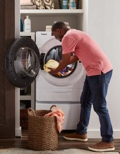 When designing a small space, it's important to add hidden storage for detergent and other laundry accessories, and appliances that take up less room. The Whirlpool® 2.8 cu. ft. Smart All-In-One Washer & Dryer, for example, combines two appliances in one to open up the space while providing maximum function. Plus, users can monitor and control their loads from anywhere using the Whirlpool® app.