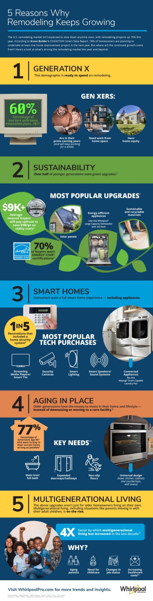 Home remodeling was on the rise in 2021, and that's expected to see even stronger growth in 2022. There are certain factors contributing to this growth, and understanding them is key to a successful home remodeling project. Below, explore five compelling reasons why the home improvement market is thriving.