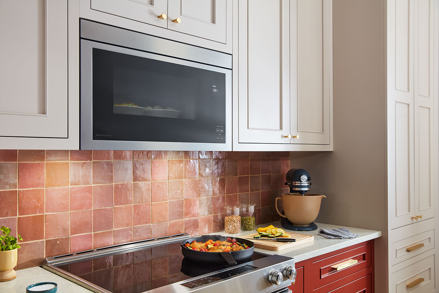 Beauty and function are of equal importance to home buyers, and they deserve a kitchen that won’t compromise on either. The KitchenAid® Over-The-Range Microwave with Flush Built-In Design integrates evenly with surrounding cabinetry for a seamless kitchen design.5 The turntable-free design maximizes cooking space for large or multiple dishes and circulates heat around dishes with a hidden motor.