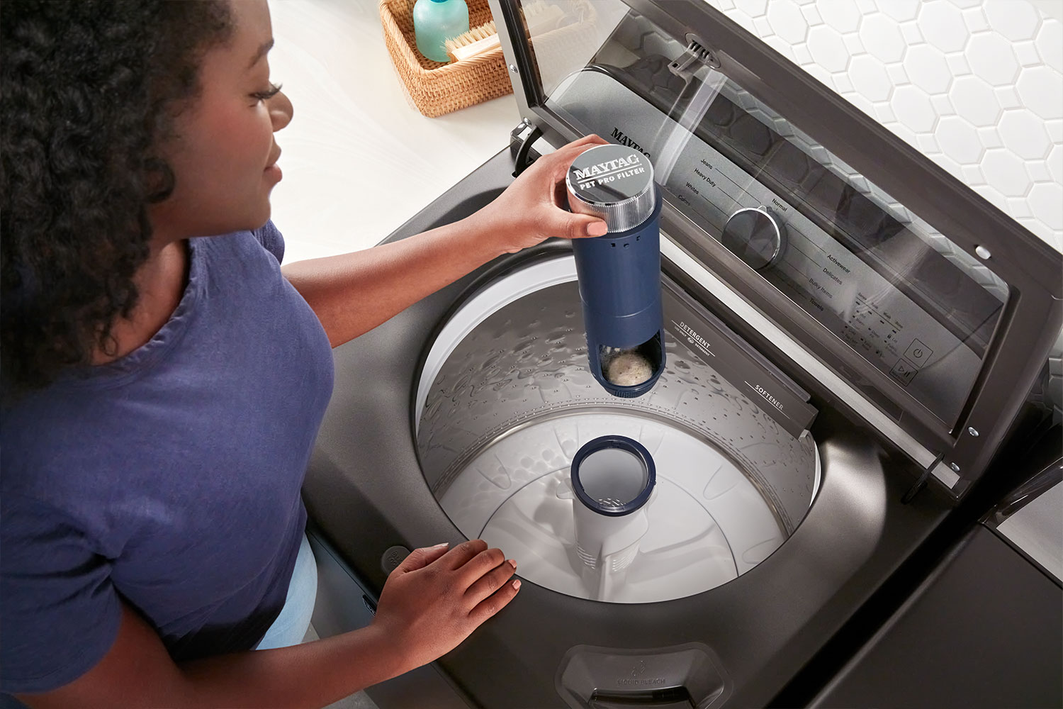 Today's home buyers are pet lovers, with 70%2 of American households owning a pet. However, cleaning up after them has proven quite a challenge. In fact, 57%3 of pet owners report spending more time and energy cleaning up pet hair than they want to. The Maytag® Pet Pro System has the industry’s first pet hair filter in the washer that removes up to 5X4 more pet hair from clothes. The Pet Pro option unleashes additional water and a deep rinse to activate the Pet Pro Filter, which lifts and captures pet hair from clothes. In the dryer, the Pet Pro option lifts and traps loads of pet hair with an XL lint trap.