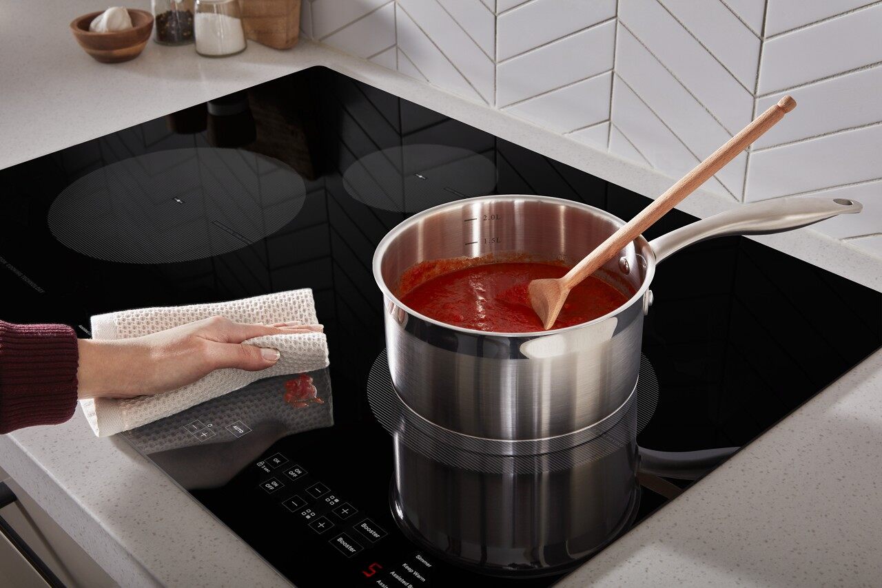 With the help of the right appliances, the dreaded cleanup process can be made a lot more efficient. Incorporating easy-to-clean appliances can help homeowners clean as they go to keep the mess to a minimum and reduce the amount to do at the end of the night. Induction cooktops, like the WhirlpoolⓇ 30-Inch Induction Cooktop, are easy to clean because the cooktop itself does not get hot due to the direct heat transfer of induction technology.