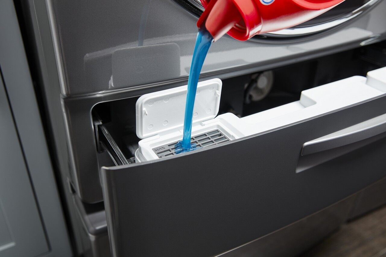 Select Whirlpool® washers with the Load & Go™ dispenser hold enough detergent and fabric softener for 40 loads.