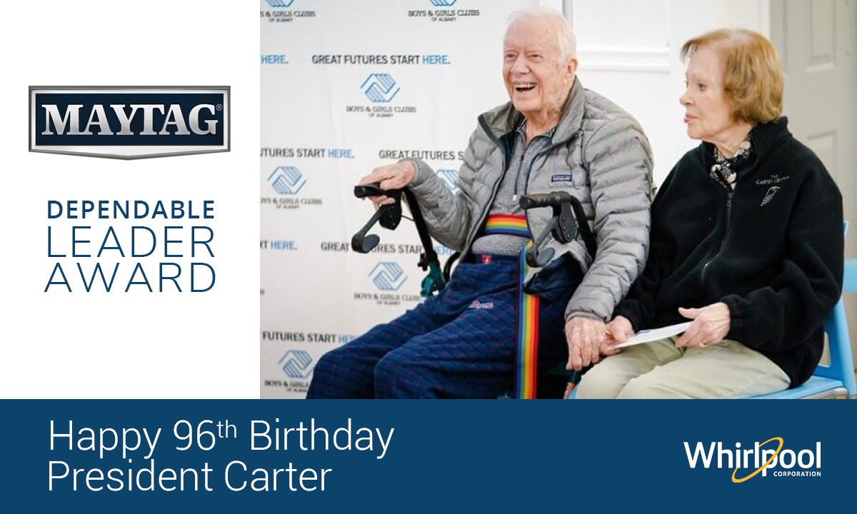 Maytag® Honors President Carter’s 96th Birthday with Dependable Leader Award and Appliance Donation to Boys & Girls Club