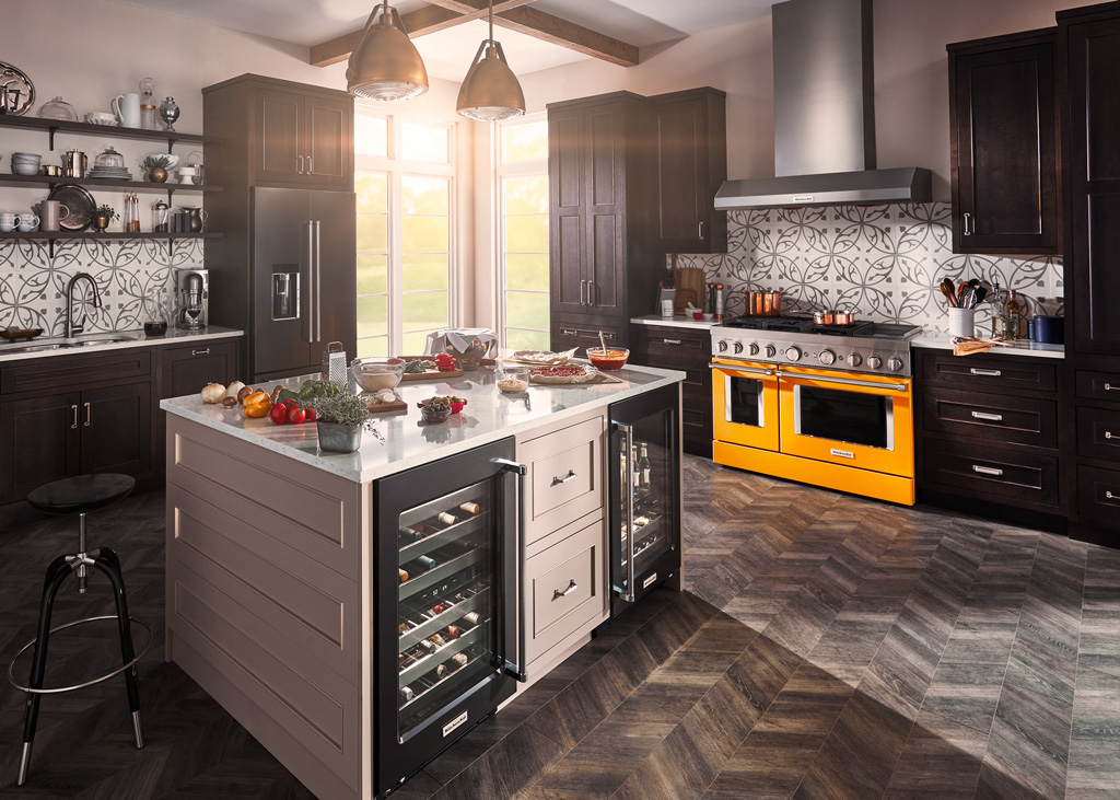 As far as appliances go, stainless steel is still the top choice for many consumers, but buyers looking for more customization may be interested in statement ranges11, which are also trending. Add a splash of color to an otherwise neutral kitchen with the KitchenAid® 30'' Smart Commercial-Style Dual Fuel Range, which is offered in nine expressive colors ranging from Passion Red to Avocado Cream.