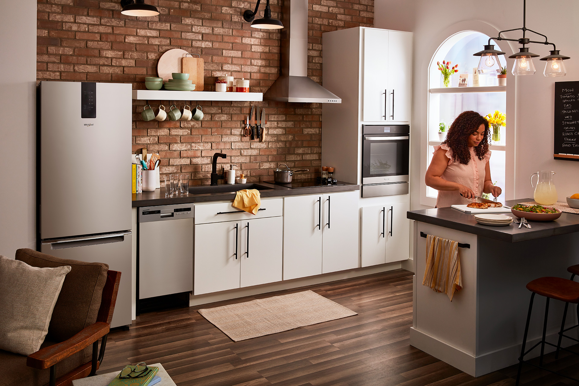 When designing a single-wall kitchen, it’s important to make the most of every inch. That means incorporating lots of cabinetry15 for storage, using one color palette16 to make the space feel larger and adding space-saving, yet functional appliances. The Whirlpool® 2.9 Cu. Ft. 24 Inch Convection Wall Oven, for example, is compact while still providing the function of a larger oven, allowing users to bake multiple items at once with True Convection Cooking. When it comes to cooktops, an induction cooktop like the Whirlpool® 24” Adaptive Induction Cooktop directly transfers heat to cookware, meaning dinner is on the table faster and can even function as an extension of countertop space.