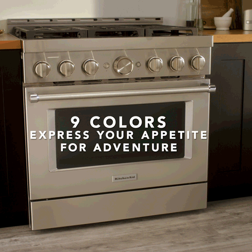 Bold pops of color10 are also a major component of midcentury style, which can be achieved through backsplashes, cabinets and even appliances. For example, the KitchenAid® 30'' Smart Commercial-Style Dual Fuel Range with 4 Burners comes in nine different shades, such as Passion Red or Yellow Pepper, to create a striking, colorful statement in any space.