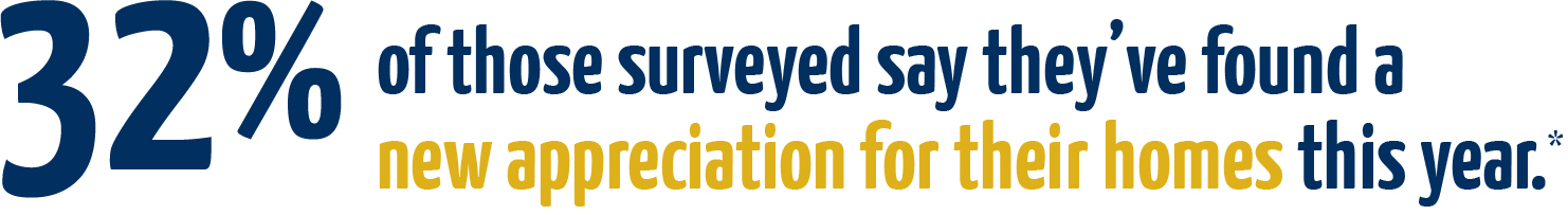 Perhaps it's no surprise that nearly a third (32 percent) say they've found a new appreciation for their homes this year, and 27 percent say spending more time at home has produced unexpected positives.