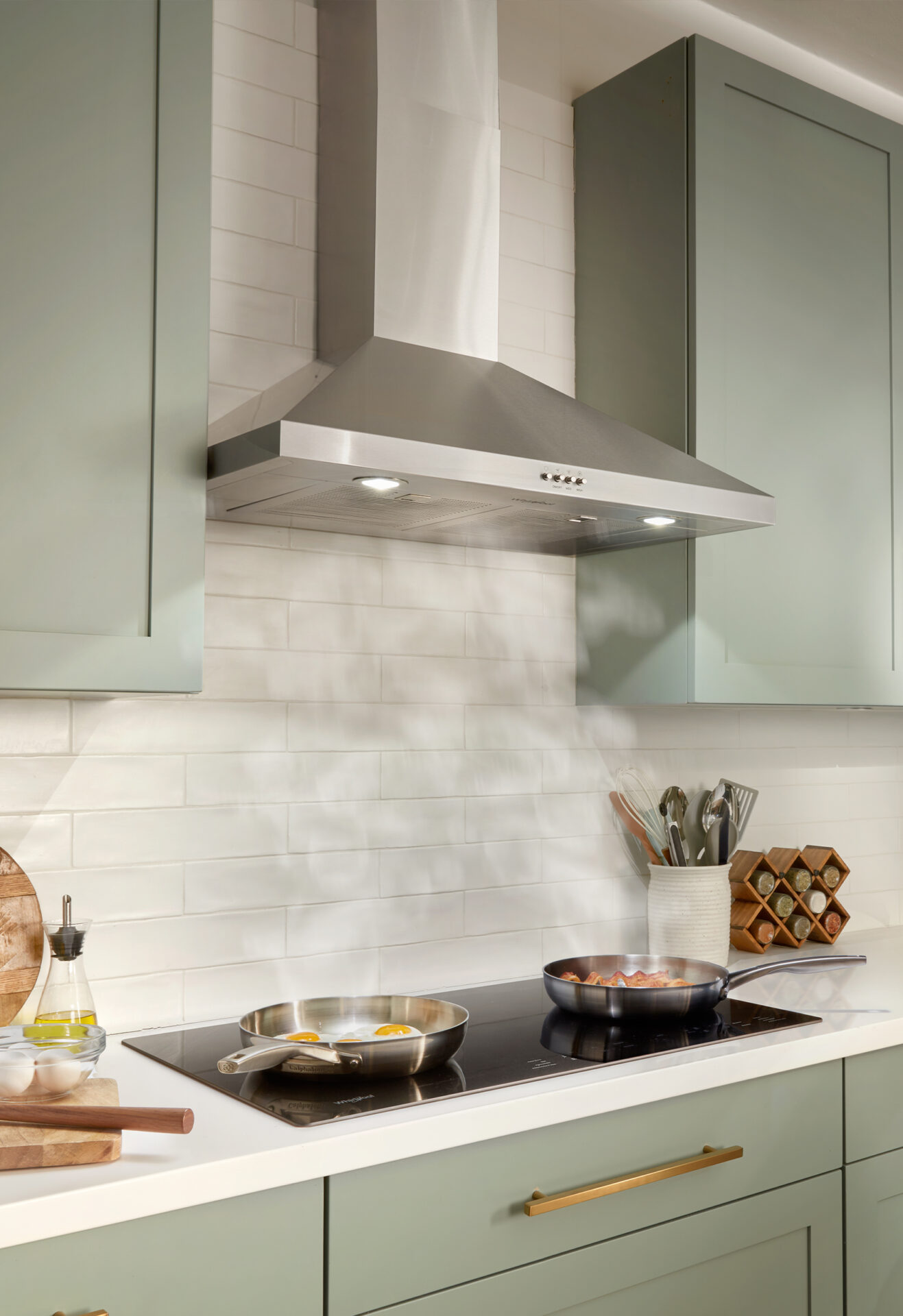 Nature-inspired colors on walls or cabinetry can be used to emulate the mood-boost nature provides.9 Subtle accents of color on appliances, such as the avocado cream-colored KitchenAid® 30'' Smart Commercial-Style Gas Range with 4 Burners, can also bring the beauty of the outdoors into the home.