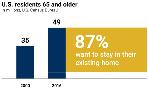 According to the U.S. Census Bureau, the number of U.S. residents 65 and older grew from 35 million in 2000 to 49 million in 2016, and every day more of them are from the baby boomer generation, which includes people born between 1946 and 1964.